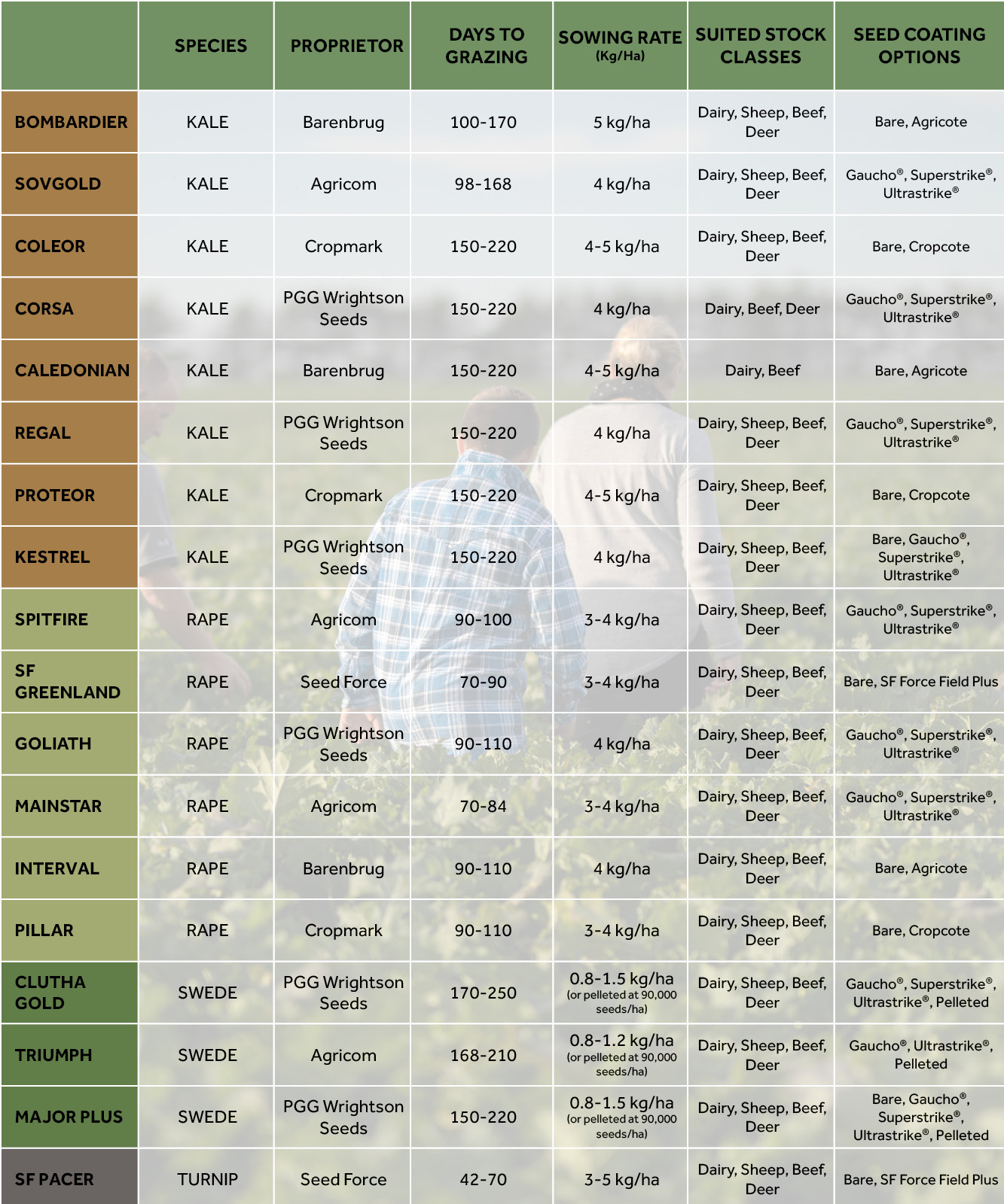 Get the latest information on Ruralco's top selling brassica varieties. Contact Ruralco today to discuss the best option for your farm or to place an order.
